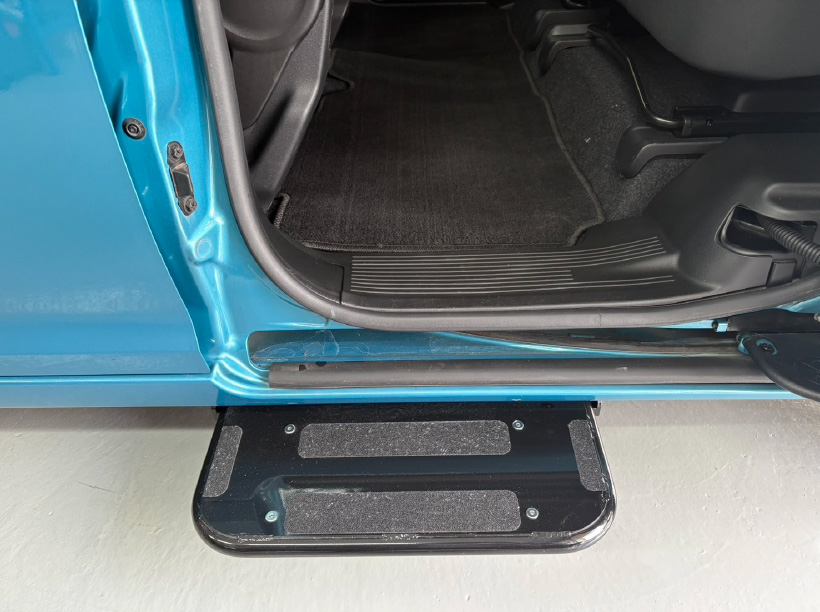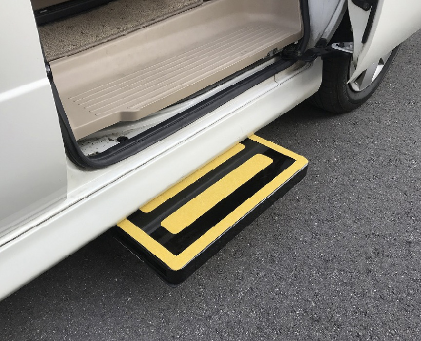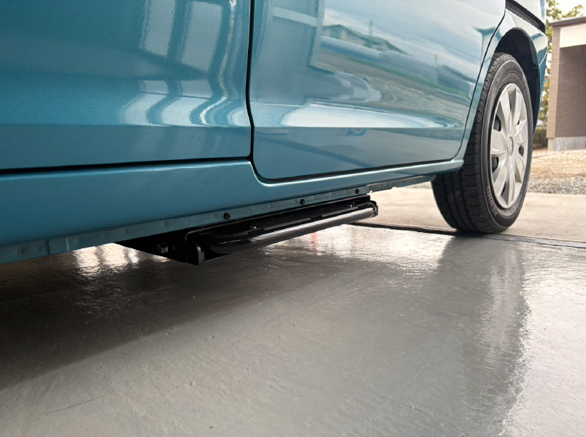 1段ステップがあることで負担軽減につながり、安心安全に乗り降りすることができます。また、LED照明を標準装備しているので、夜間も安心してご利用いただけます。電動補助ステップは、車高の高いSUVや送迎車はもちろん、2列目や助手席など様々な車種に取り付けが可能です。